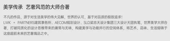 LWK+PARTNERS建筑事务所、AECOM、梁志天集团,从建筑到园林再到室内设计,清一色“顶尖”团队当纲。