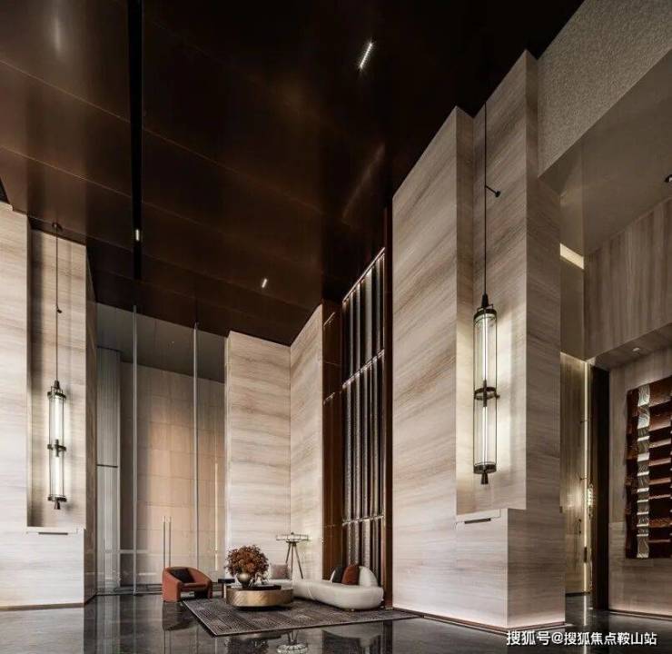约9米高朗阔入户大堂,汲取明阔开朗的岭南建筑气质,奢雅的仿古铜色大门之外,立面色调以浅色石材中性色为主,摒弃多余而浮夸的修饰,将广府气韵浓缩其中,整体呈现出古今相宜的尊贵,兼顾艺术感与审美细节。