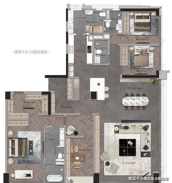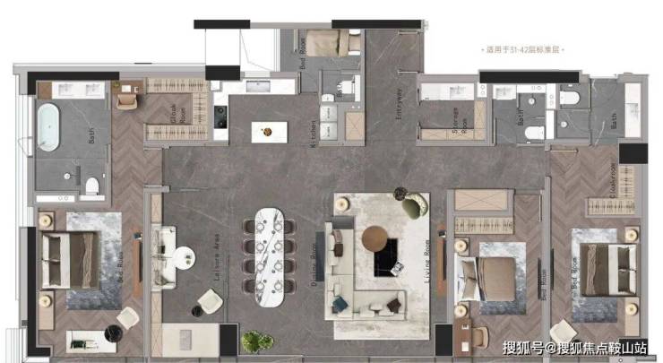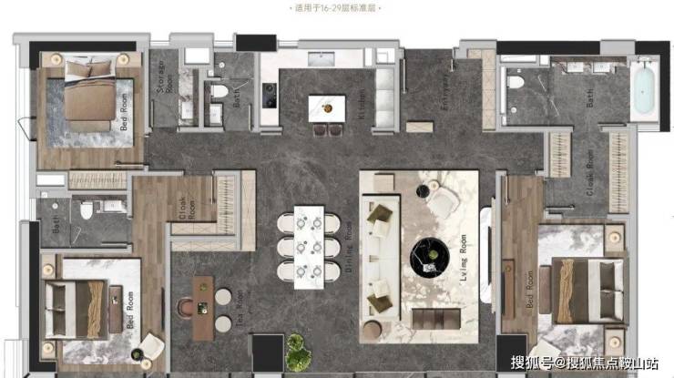 因为是旧改项目,这是金融城唯一一个可以建300平以下小户型的商业项目,所以也会看到项目百平以下的公寓和135~160㎡的商业平层。