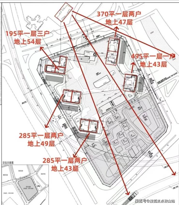 项目规划建设12栋住宅,首批将推出5栋,约422套住宅,户型建面约210-510㎡。