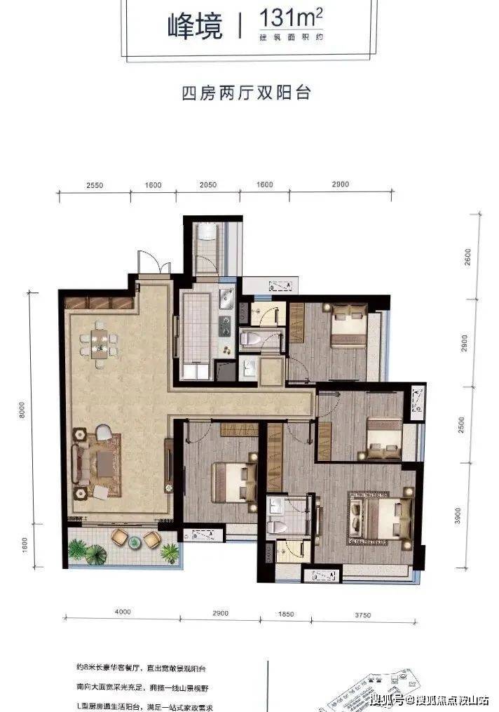 其建面 约131-143㎡大平层四房 户型采用全南朝向,且这远优于市场上普通的阳台朝南。
