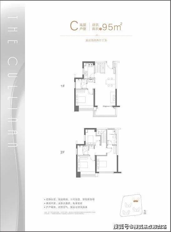 总建筑面积约10.6万㎡,设有4栋高层复式洋房,建面为85-120㎡,采用错式排布,全南向设计,通风采光俱佳,带精装交楼。