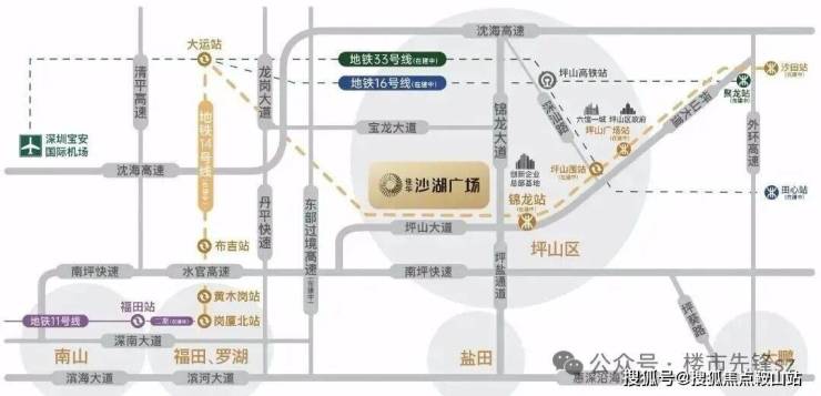 地铁:紧邻地铁14快线坪山门户站——锦龙站(约600米),12站福田岗厦北。周边临近地铁16号线(14号线一站直达坪山围站换乘)、地铁19号线(规划中)、地铁33号线(在建)。