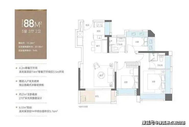 高质产品:建面约76-130㎡精质美宅,实际使用率达91-99%,更大居住空间,更高舒适度;
