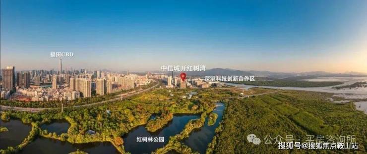 中信城开红树湾,位于18公里最贵重的滨海湾线头排,雄踞“深港科技创新合作区”规划范围内,一线紧邻福田红树林生态公园。