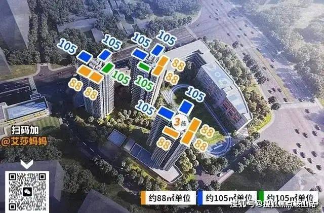 户型只有2个面积,2梯5户设计,包括88平四房(1个户型)、105平四房(2个户型)。