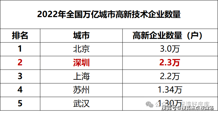 国家级高新技术企业数量居全国第二,2022年累计超过2.3万家。