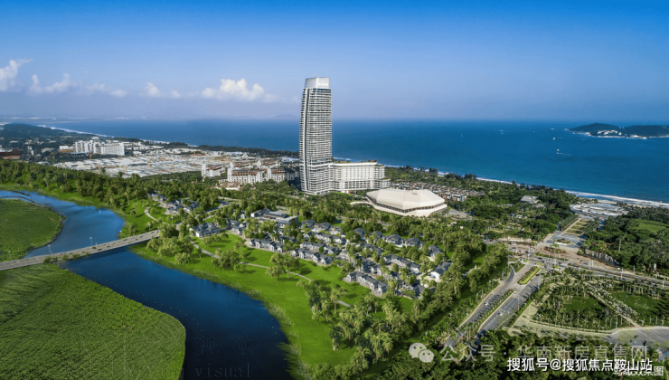 海棠湾核心地段,临海面河,玉带缠腰,河海汇聚呈“敛财”之势,背靠中国30000公里海岸线上最高的地标建筑保利瑰丽酒店,远侧是连绵起伏的环山,藏风聚气,得水为上,上风上水的绝佳风水宝地;