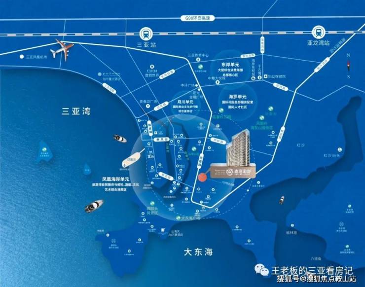 项目位于三亚凤凰路38号,背靠凤凰岭三亚最高峰、大东海和三亚湾双湾交汇处、望向三亚河和临春河,交通便利,配套齐全,是三亚最成熟的地段。