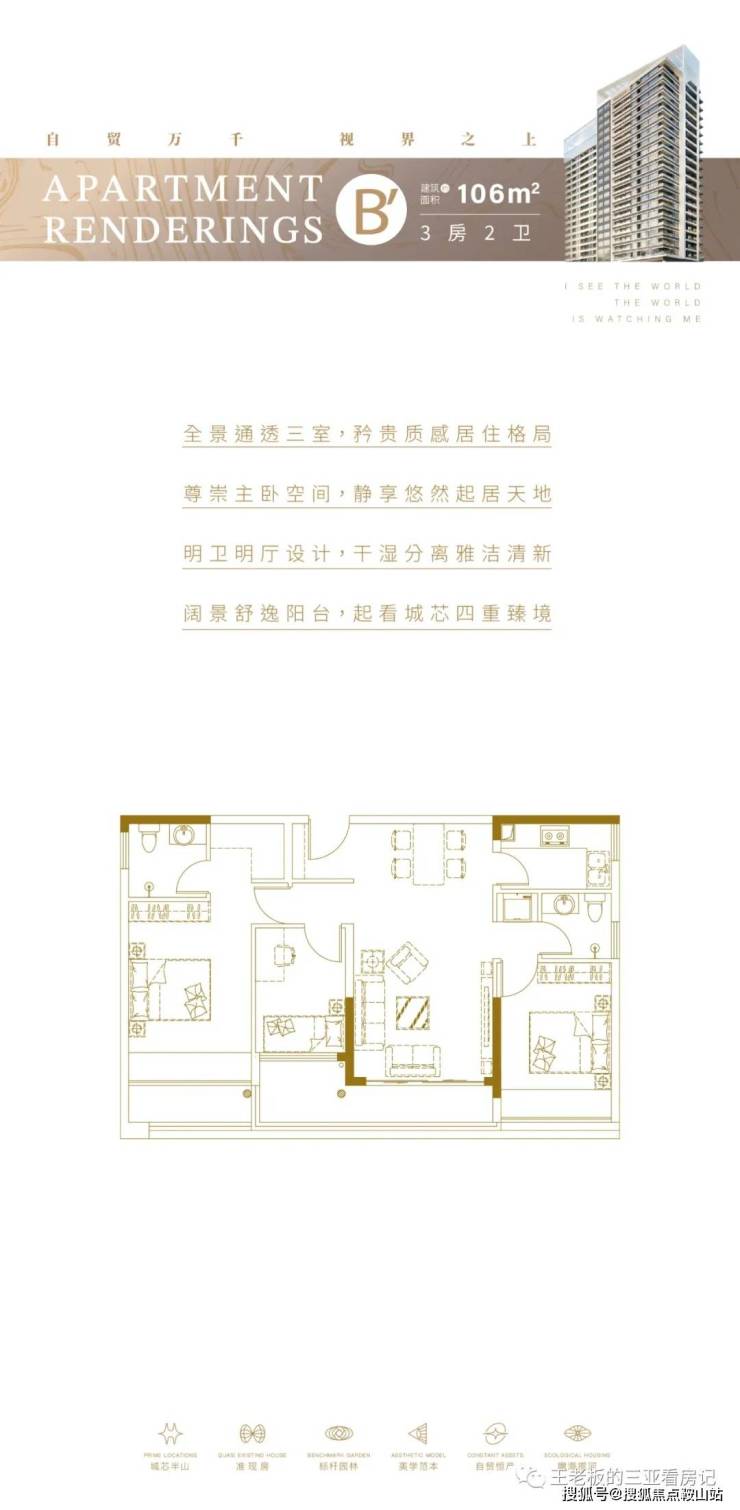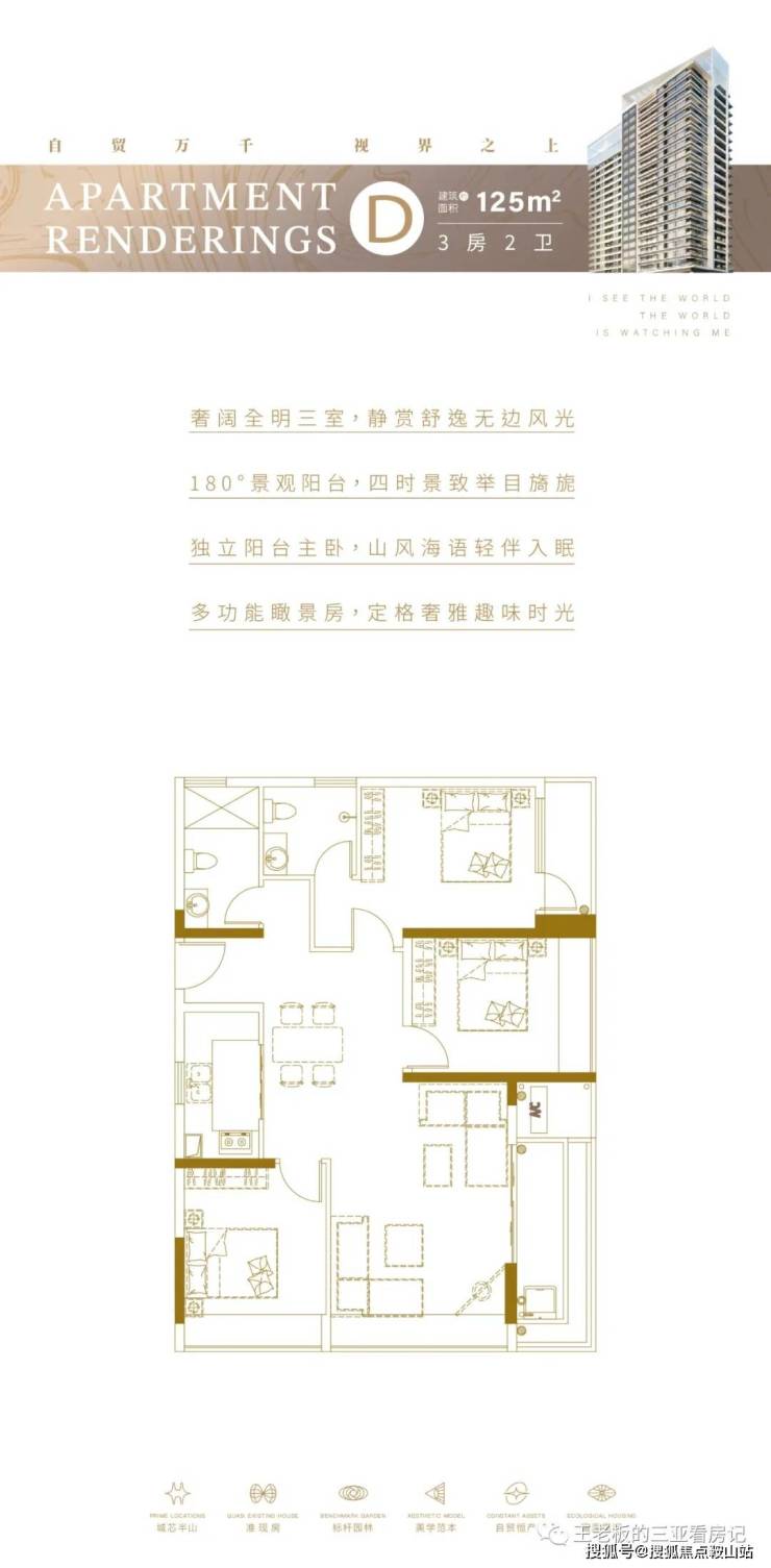 紧邻三亚中央商务区,南面大东海,北面迎宾路,东靠凤凰岭,西面三亚湾、大东海双湾交汇,门前是三亚的母亲河:临春河和三亚河,尽占城芯地利,矜贵地脉,以城芯、半山、瞰海、临河的天际视野,著写当世向往。