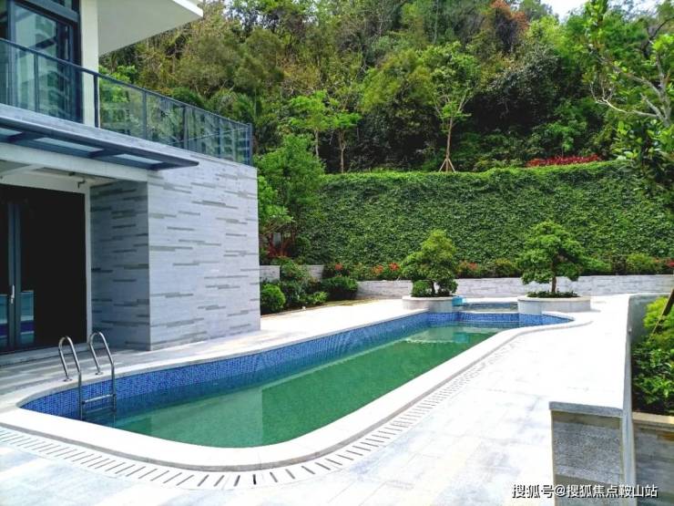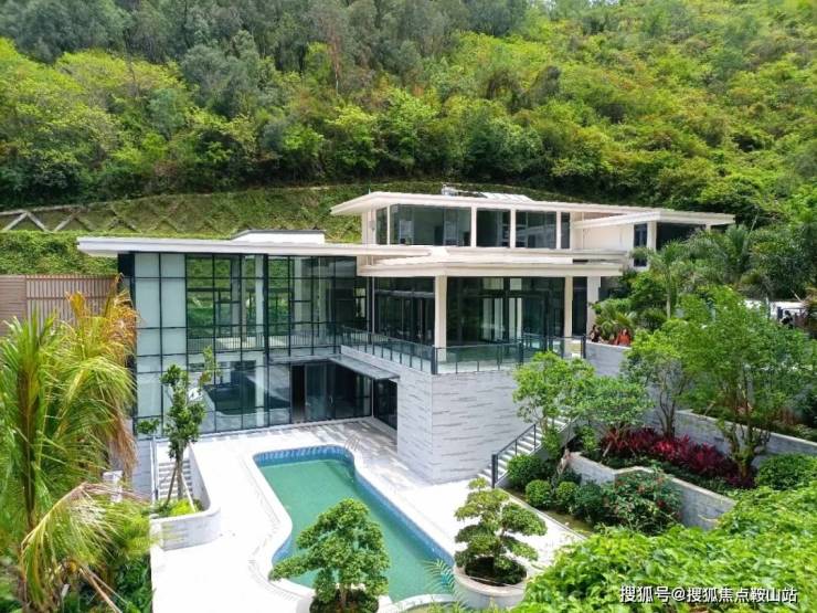 别墅一共4层,含有(6个大房间+2保姆房+1工人房+5大厅+12卫),占地约3亩,泳池面积40+平方(带加热的泡池)