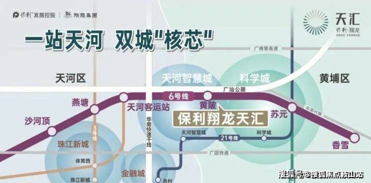 保利翔龙天汇位于“天河东门户”,左右两侧都有得天独厚的条件:左手是科创前沿阵地天河智慧城,网易、小鹏等公司都在这里;右手是广州科技城的祖师爷科学城,已经进入了收获期。