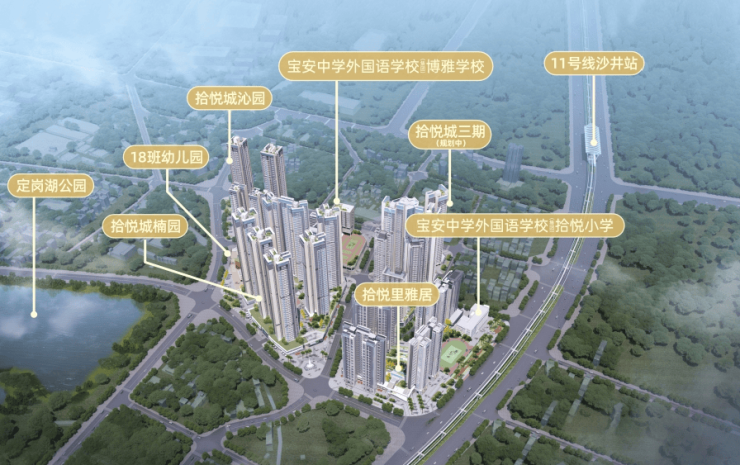 拾悦城沁园位于宝安区沙井街道壆岗社区,寮丰路与岗头路交汇处,东侧紧挨着宝安大道,距离11号线沙井站步行约800米。