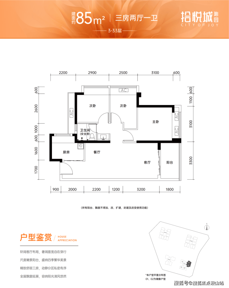 主力户型:85-89㎡3房
