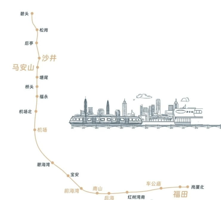 11号线沙井站800米,5站到机场,7站到宝安中心,去南山福田都方便。自驾的话,宝安大道就在门口,上高速也近。