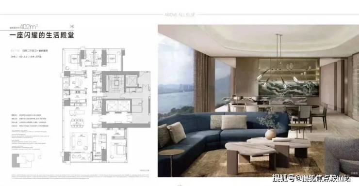 而作为全球知名设计教父Yabu Pushelberg,为约402平户型注入更深层的空间叙事,巧妙地运用其独有的设计风格与光影增强空间层次感与情感体验。
