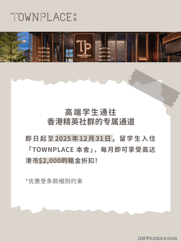 当留学成为新贵精英教育的通行证,居所的选择,早已超越安全与便捷,更是一种对未来格局的提前投射。由新鸿基地产匠心打造的「TOWNPLACE 本舍」,背靠香港龙头地产发展商,品质与管理双重保障,作为全港规模最大、专为新贵精英才俊而设的服务式住宅项目,背景雄厚,业主直租,无需中介费,现在不仅成为留学生在港的理想起点,更是提前接触新贵精英社群,与高质素的精英圈层互换知识和体验。