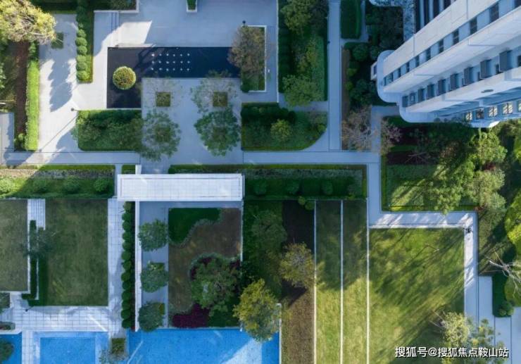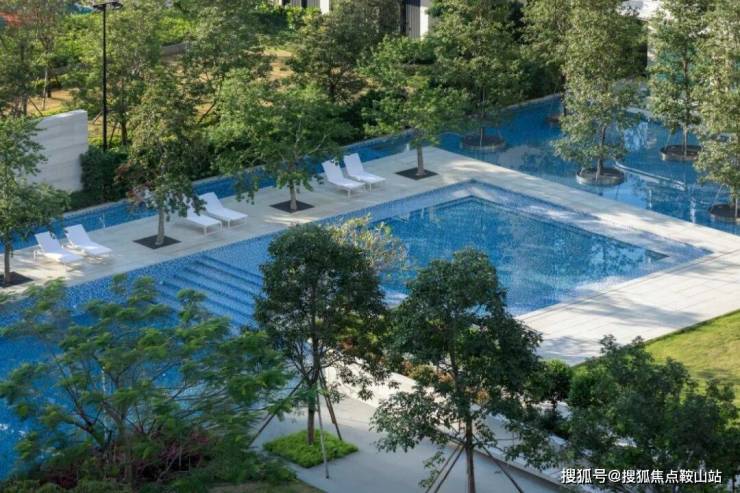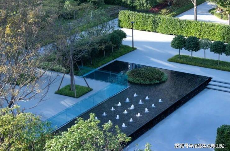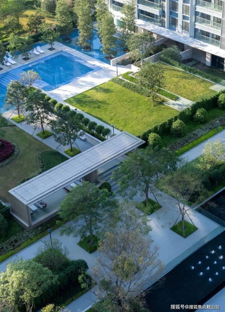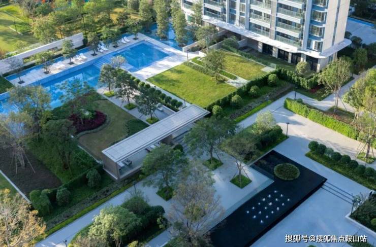 設計構築水景交融的生態美,推演以人為主體的空間感知,以綠植、拓展草坪、藝術景墻圍合空間,泳池被自然融入與包裹,最大限度地減少幹擾、保證私密以及確保孩童在社區遊玩的安全。