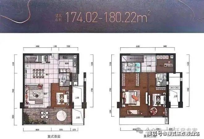 云端居所:14-58层为天际海景公寓,主力户型建面123-220㎡,包含复式院墅与平层大宅,最高使用率突破180%(如130㎡平层实得232㎡);