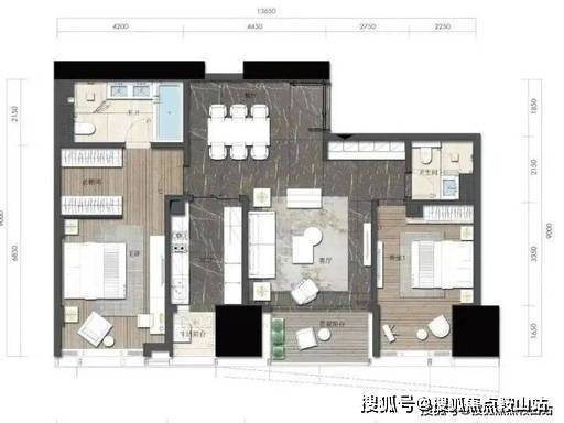63-72㎡ 1 房:入门级奢寓,总价约1300-1600 万,低门槛入主深圳湾。