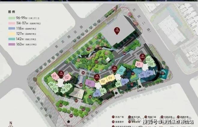 01-01地块,总占地面积约1.93万㎡,总建筑面积约23.8万㎡,计容建筑面积约18.01万㎡,容积率8.81,绿化率40.01%,共由4栋总高56F的住宅组成,1栋1单元办公40F,1栋2/3/4/5单元住宅56F,规划有公交首末站。