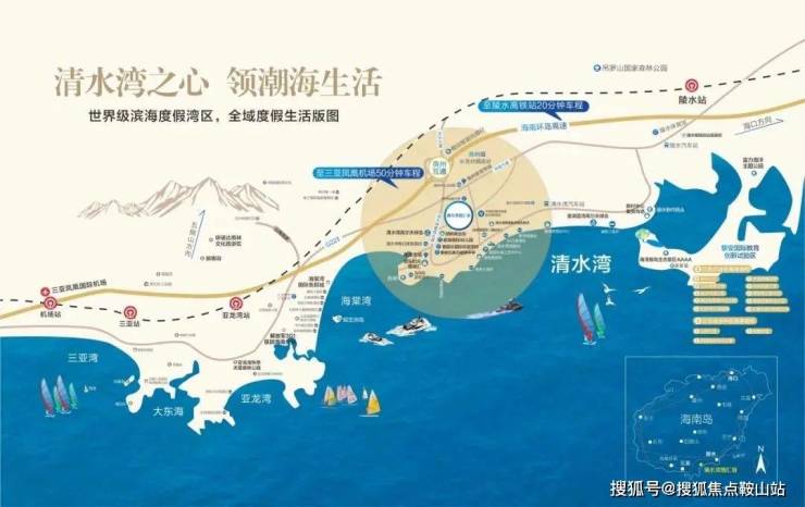 项目地处北纬18°以南,距三亚市区直线距离约45公里,尊踞大三亚醇熟生活圈;位于清水湾度假区中央核心,坐拥清水湾万亩文旅醇熟配套,紧邻陵水黎安国际教育创新试验区,致力于打造清水湾片区产品标杆。