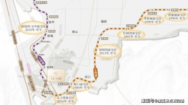 轨道交通:距离2号线/5号线“赤湾站”约500米,步行约8-10分钟,5号线串联前海、宝中、西丽留仙洞、深圳北站,2号线被誉为深圳豪宅线,串联太子湾、深圳湾、红树湾、华侨城、香蜜湖、福田中心等核心地段;