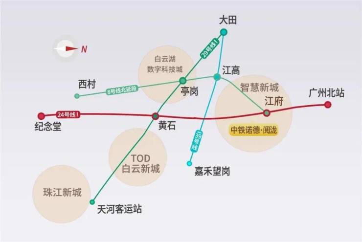 中铁诺德阅泷处于广州白云新江高核心商业区,坐拥白云北所有优质核心资源,集商业、教育、交通、政务、医疗和产业于一体