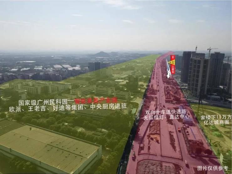门前广花快速路双向8-10车道,全程无红绿灯、预计2023年正式通车,部分路段已完工,15分钟直达白云湖,价格劲省200万,多一套房