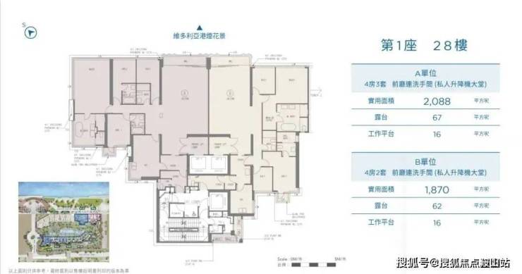 特色户:实用面积 1109 至 3442 方呎,共 10 伙。