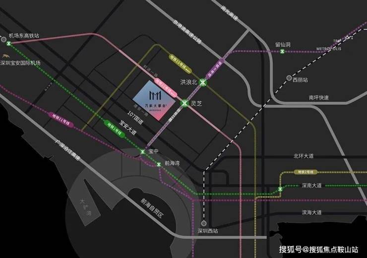 万科大都会位于宝安区新安街道创业二路与建安一路交汇处,项目距离灵芝站300M左右,地铁5号线和12号线(在建)在灵芝地铁站交汇,在建的12号线(蛇口-海上田园),预计2022年底可以通车。5号线串联罗湖、深圳北站、留仙洞总部、宝中、前海,12号线串联蛇口自贸区、南山南油、空港新城等,占据着主要交通枢纽、高端产业的大动脉。其中2站地铁到宝中,5站到前海湾;往北,3站到留仙洞,5站到大学城。即便是去深圳最新的网红打卡地、深圳首座巨型摩天轮“湾区之光”,也只有3站地铁。