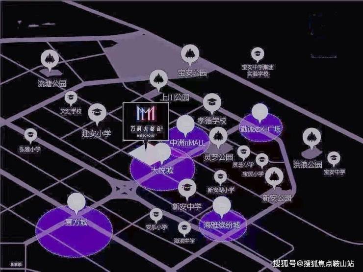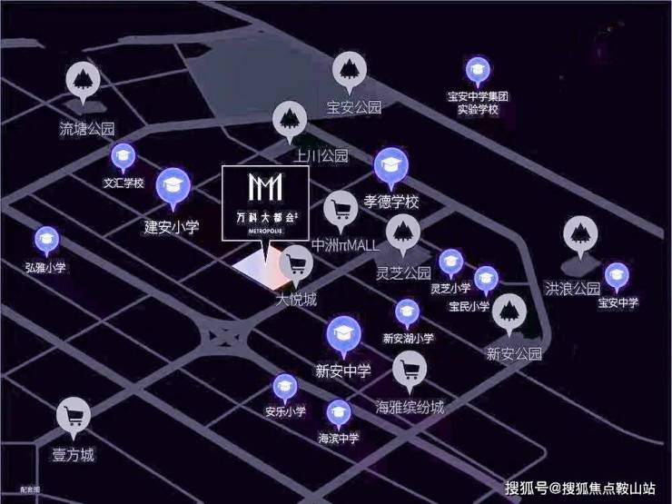 万科大都会家园一路之隔有15万㎡的大悦城mall,这将是深圳的首座大悦城,规模非常大,未来项目的商业氛围与商业规格将是这一带的标杆,但目前还未建成。周边已经建成且营业的大型商业也很多,创业二路上就有约6万㎡的中洲πmall,约4.5万㎡的勤诚达k+广场;而地铁5号线往宝中方向2个站即是36万㎡的壹方城,目前是深圳最大的购物中心,而未来12号线地铁1站(新安公园站)之隔,也可快速抵达新安的老牌商场——海雅缤纷城,可见项目商业配套的丰富性。