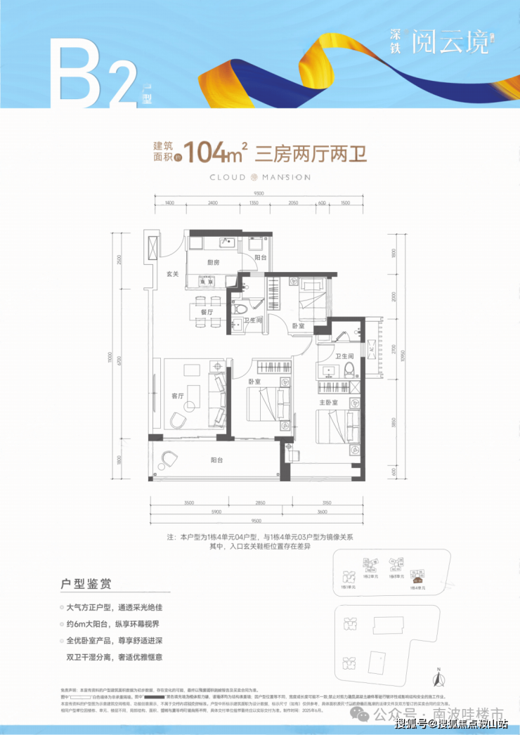 【户型面积】约100-104㎡3房