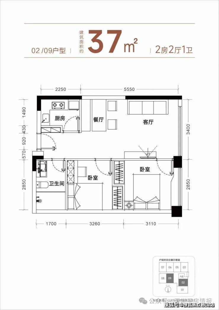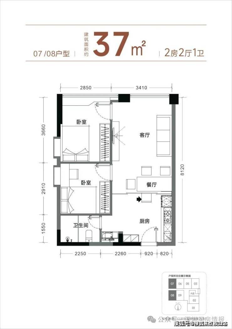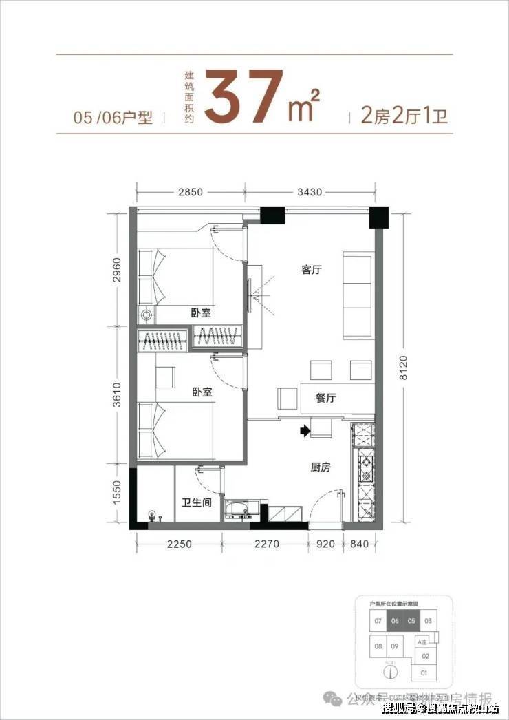 【产品面积】约37㎡小两房(实际套内使用面积接近54㎡)