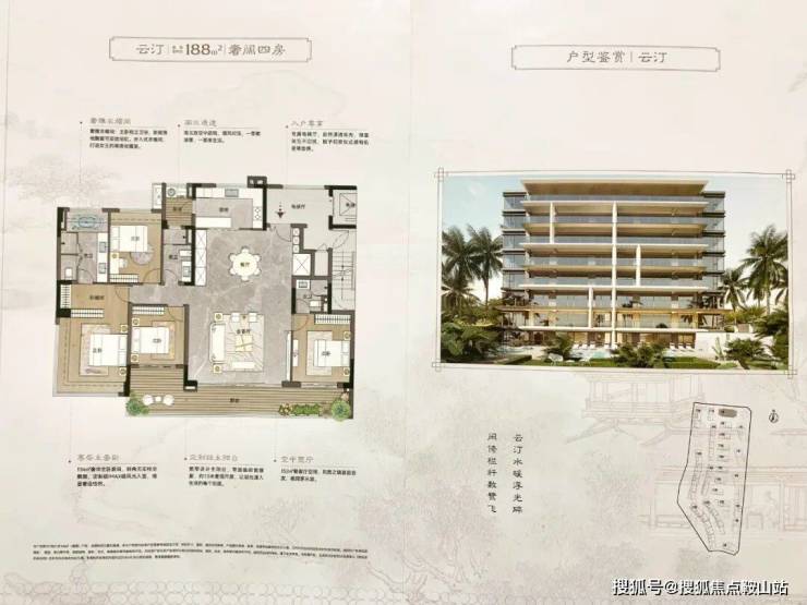 目前,小高层主推1、2栋,涵盖178、188㎡奢阔四房,其中低楼层为178㎡,4层以上可望湖为188㎡,带装修均价约1.8-2.3万/㎡。
