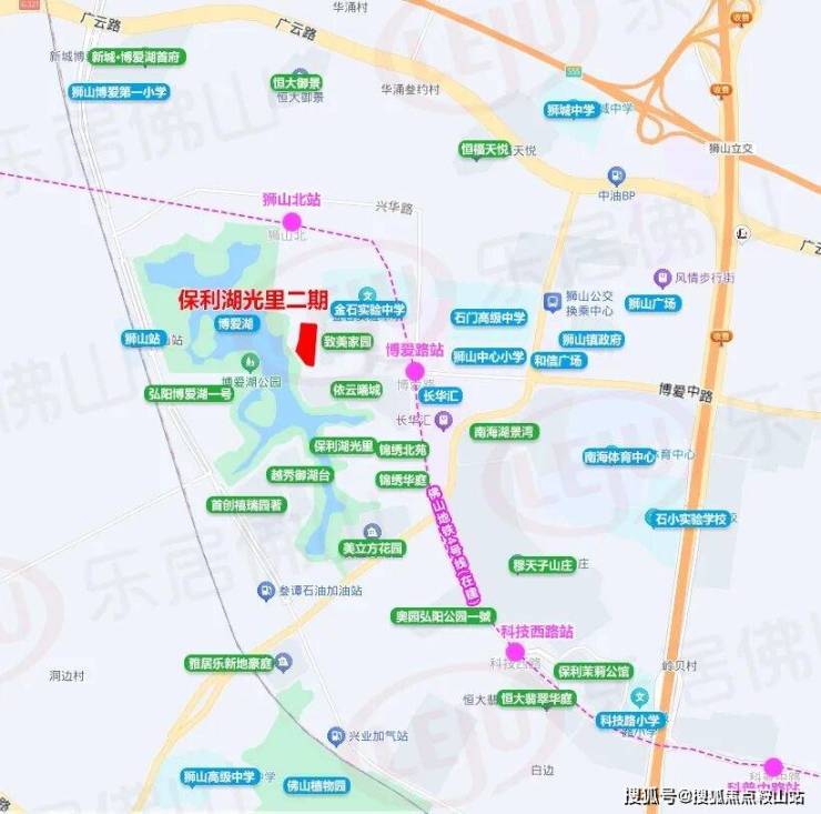 从位置来看,保利湖光里二期位处博爱湖北湖片区,坐拥一线望湖资源,一路之隔建有金石实验中学、规划待建石门中学博爱湖校区,与在建佛山地铁4号线的站点相距不到500米,距离城际狮山站不到1公里。
