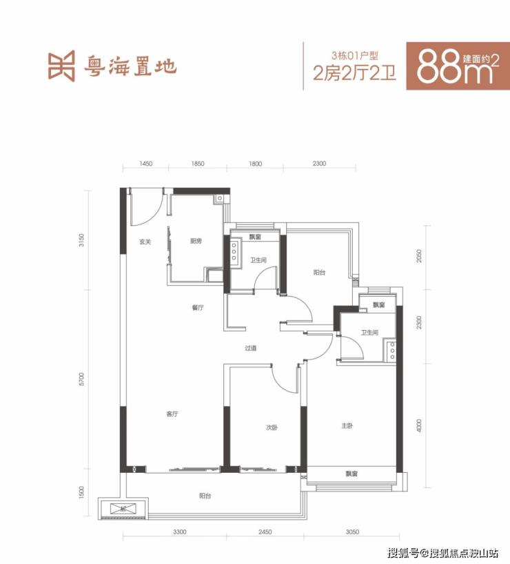 88㎡朝南2+1房2厅2卫,折后总价50-62万左右/套
