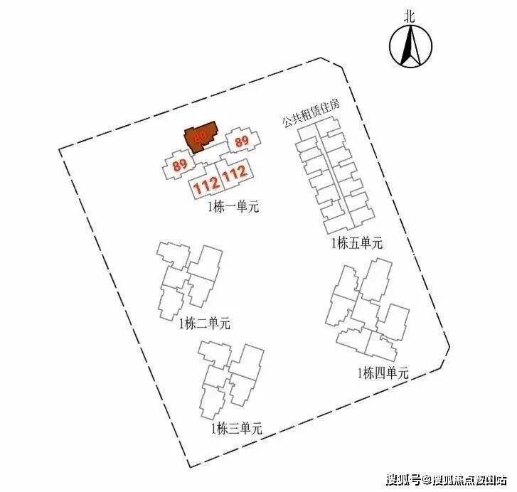 其中1栋1单元住宅33F,1栋2/3单元住宅31F,1栋4单元住宅38F,1栋5单元公租房32F,小区地下车库配建有公交首末站。