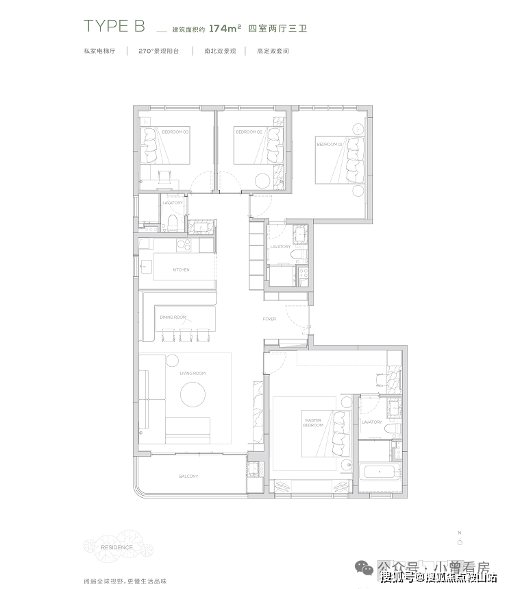 约37万㎡全龄社区,产品涵盖145-315㎡三至五房,专梯专户,享有私家电梯厅,出入更具私密性
