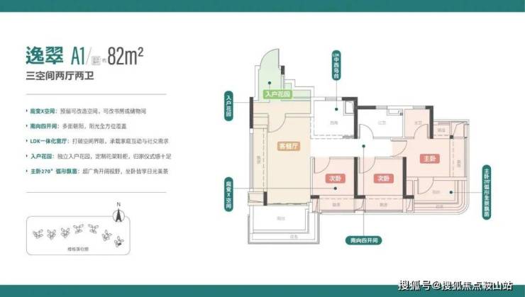 以约91平方米户型为例,它做到了“南向四开间”,意味着客厅与所有卧室均能迎接阳光。