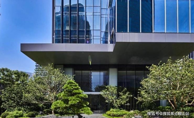 大堂入口处,自日本引进的百年黑松与镜面水景造型相呼应,寓意事业蒸蒸日上、松鹤延年,亦最大程度将仪式感拉满。
