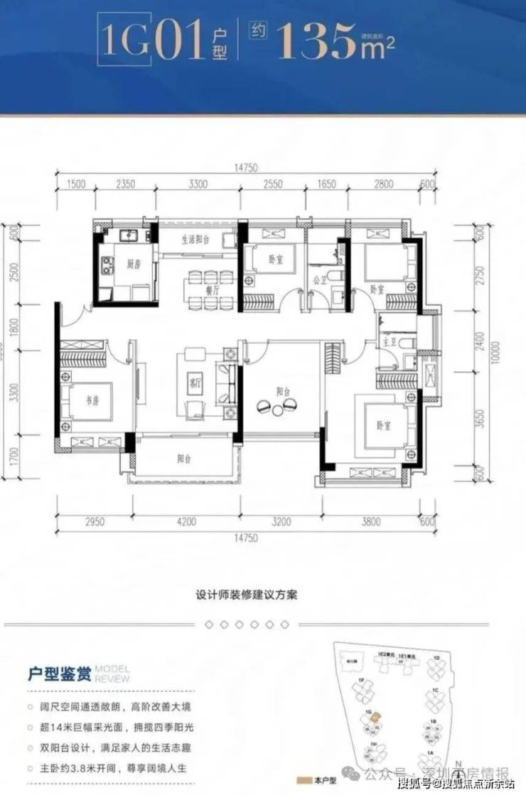 1G-01户型:约135㎡ 五房两厅两卫: