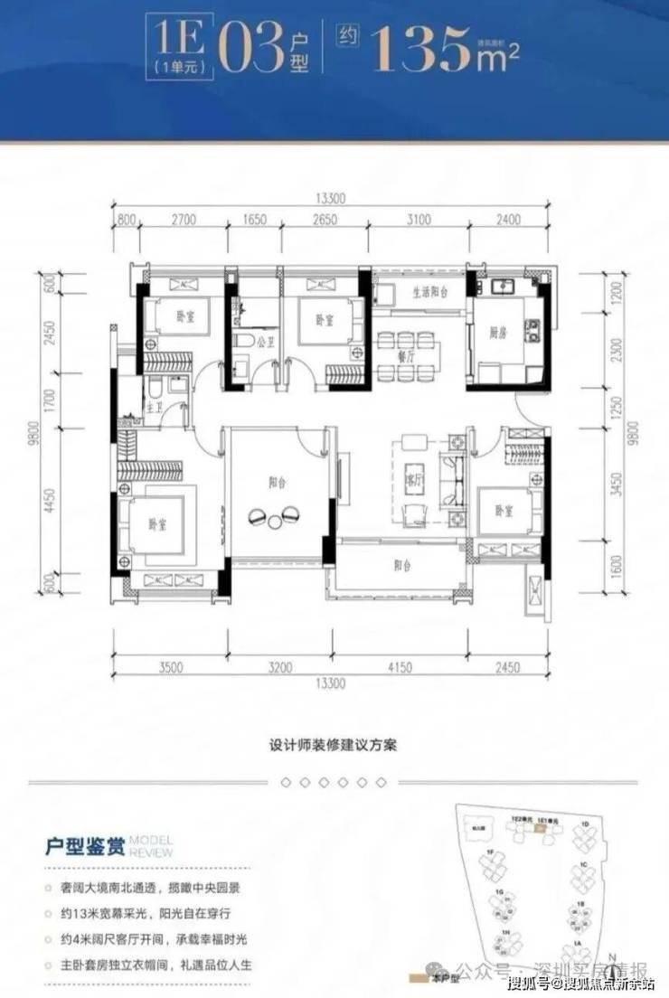 1E1-03户型:约135㎡ 稀缺五房两厅两卫: