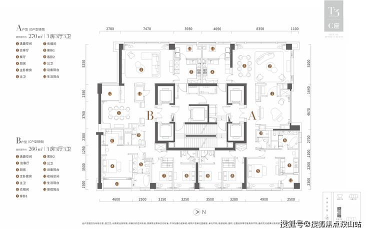 T1栋则是更加奢华的3梯1户(一层只有一户),533-540㎡