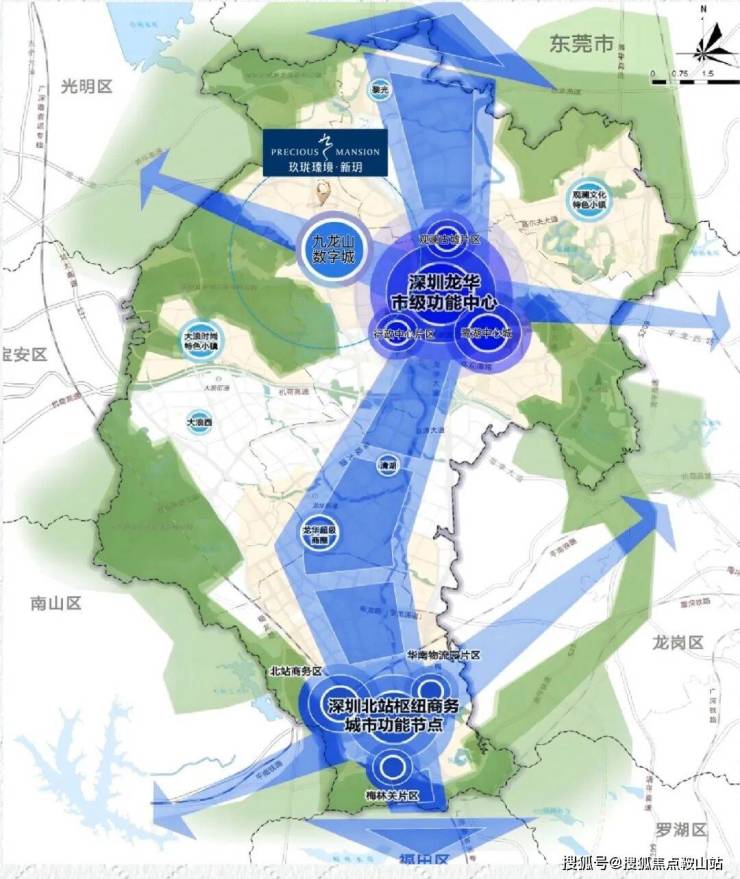 项目位于龙华九龙山数字城,地处龙澜智造走廊与梅观创新走廊交汇点,定位为粤港澳大湾区智造中心,与北站商务中心共同构成龙华南北"双中心"格局。