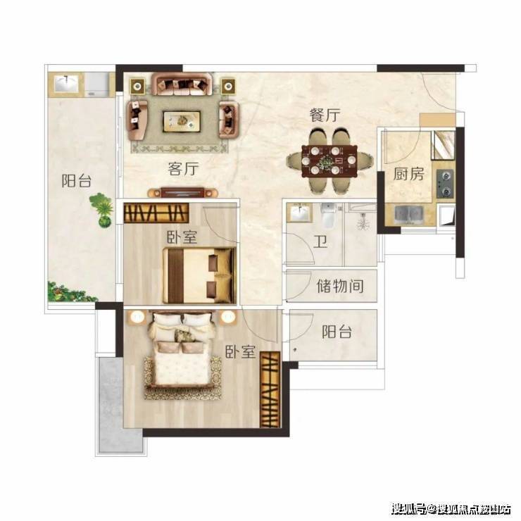 建面约92m² 3房2厅2卫,户型方正实用,动静分区,布局合理,主卧带转角飘窗,奢享270°视野。