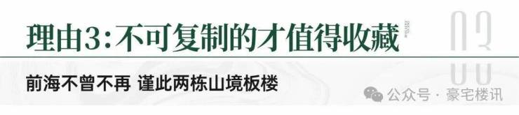 TOP级前海山境奢居:仅约2.66超低密板楼,屹立前海繁境,环拥一线大南山,从尺度、舒适度、格局、景观多维重塑奢居想象,以超越价格的豪宅级品质力,序新前海山居的奢宅标杆。