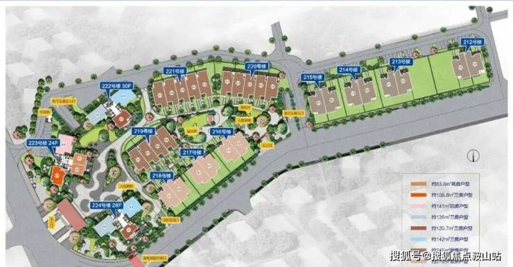 3栋住宅楼(260户):222-224#为80-142㎡二三四房的住宅产品