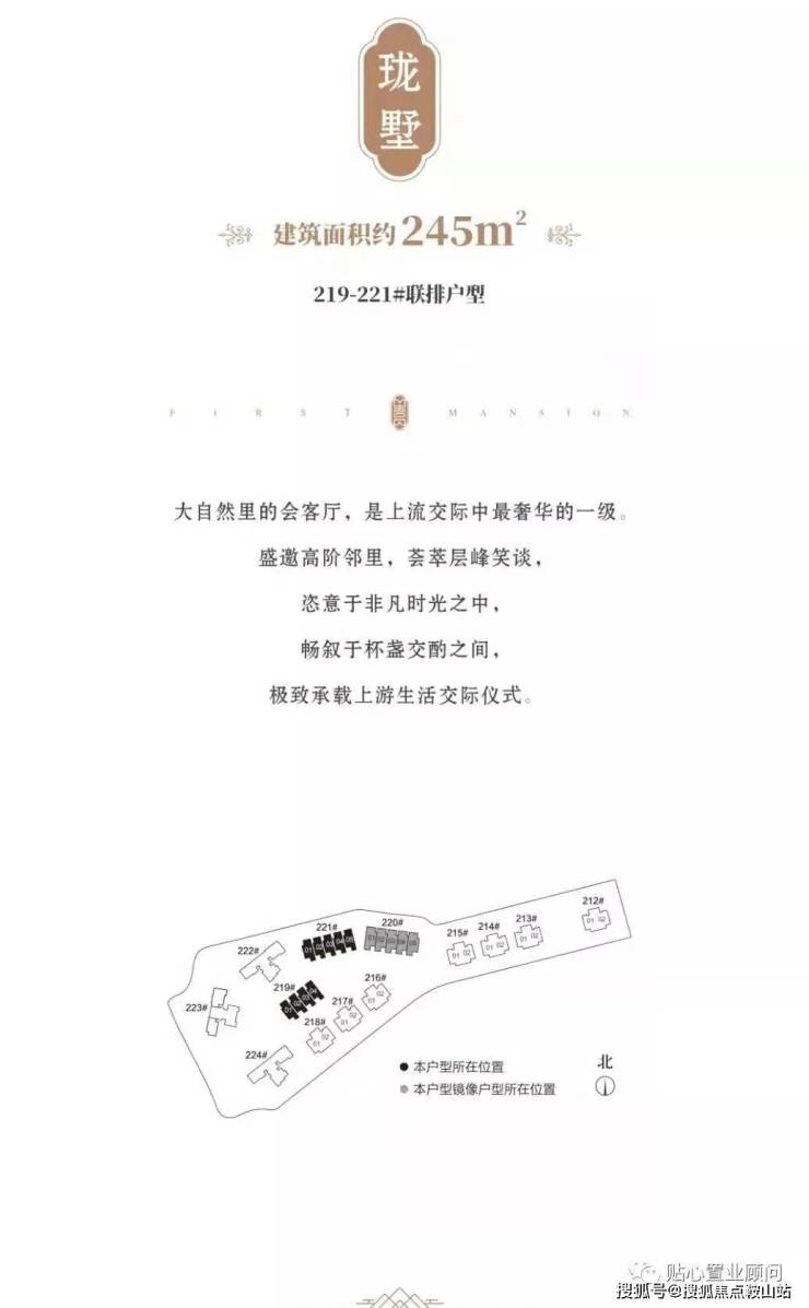 28套别墅:212-215#为465㎡双拼别墅,216-218#为276㎡双拼别墅,219-221#为245㎡联排别墅