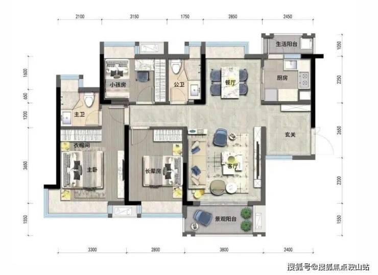 ◎户型方正,动静分区,干湿分离